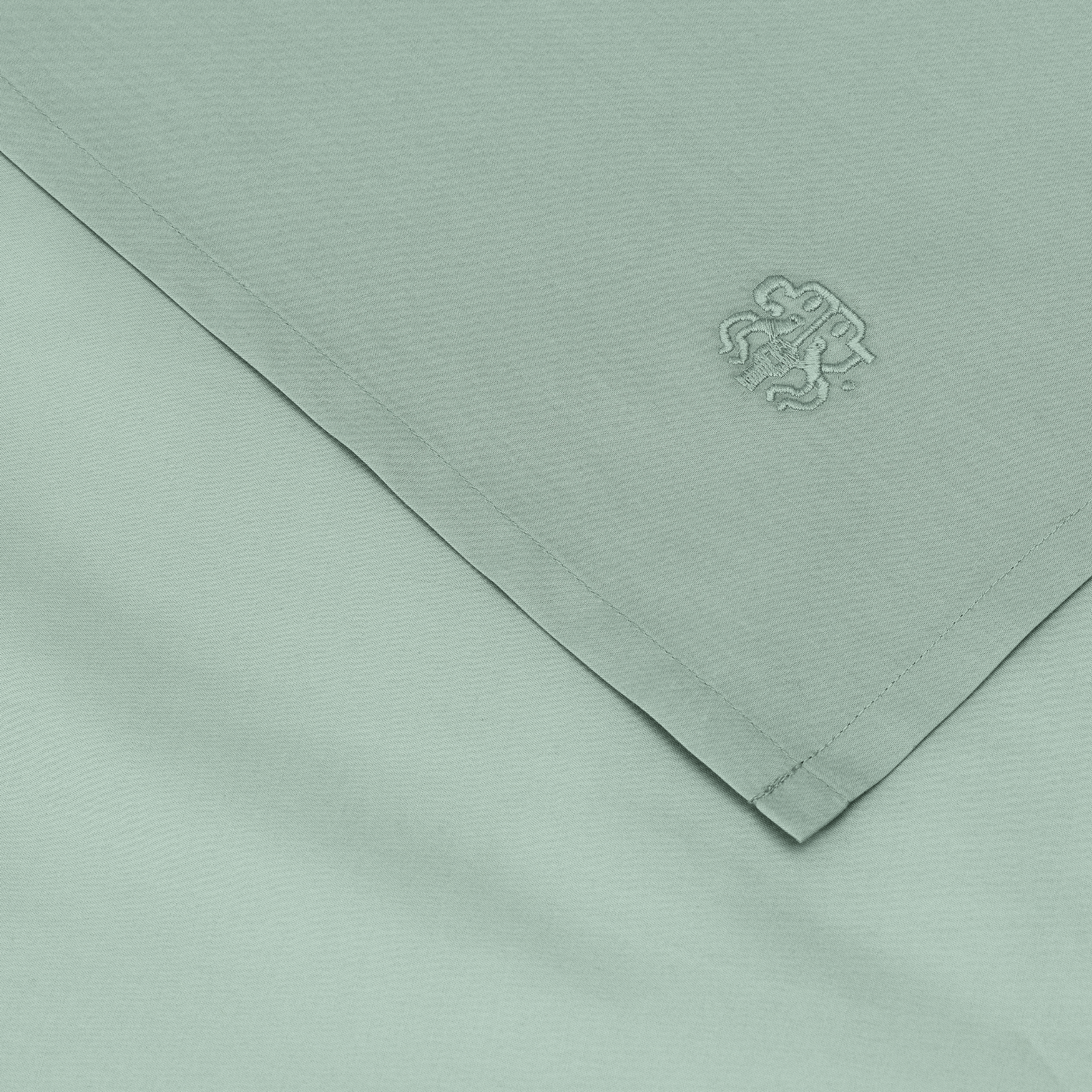Det klassiske, flate lakenet kan brukes på alle senger, men anbefales ikke til elevasjonssenger. Lakenet bærer Georg Jensen Damasks ikoniske logo som et diskret broderi. Sage Green er en grønn nyanse med diskrete blågrå undertoner.