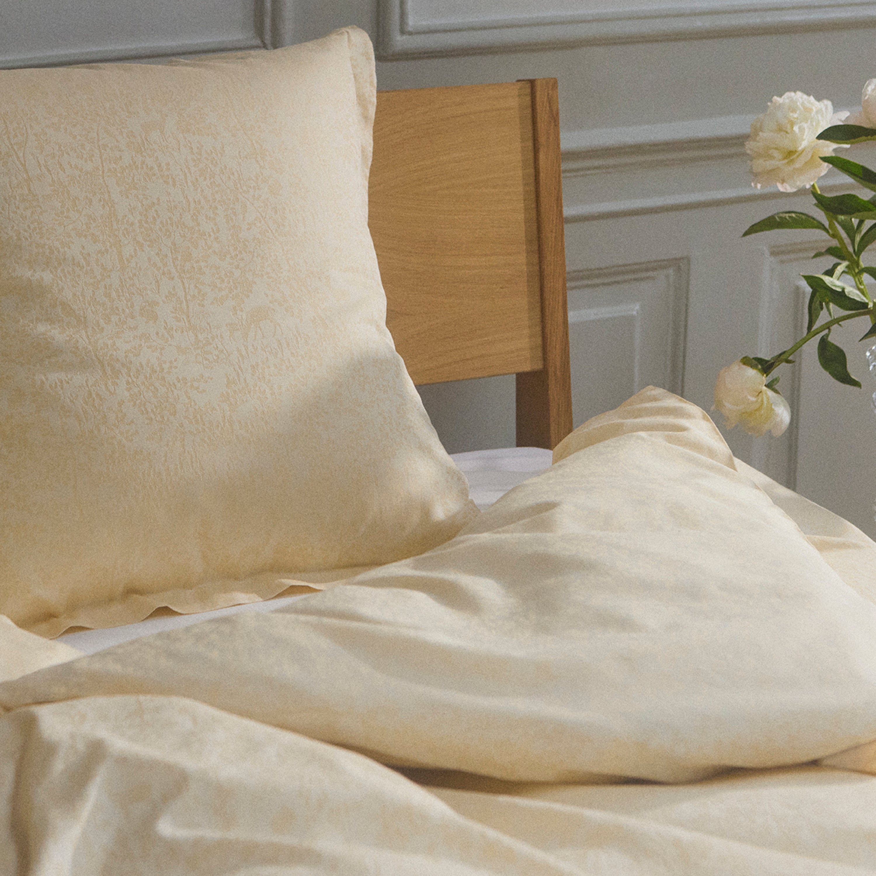 Putetrekket er skapt i 100 % økologisk bomull. Fargen Misty Yellow er en mild, lysegul farge.