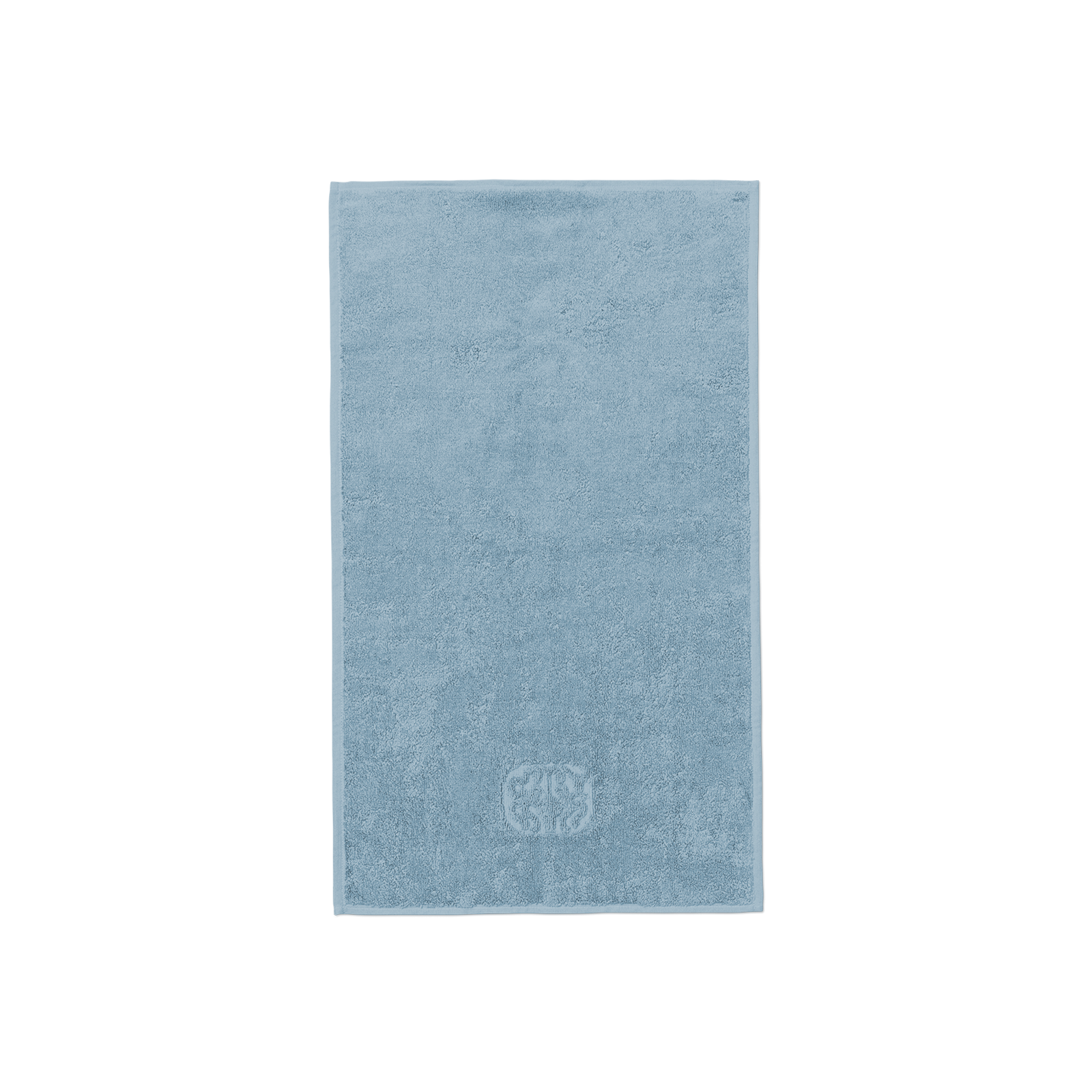 Damask Terry-gjestehåndkleet har et enkelt uttrykk med Georg Jensen Damasks ikoniske logo innvevd som en elegant detalj. Blue Hour er en vakker og tidløs mellomblå farge.