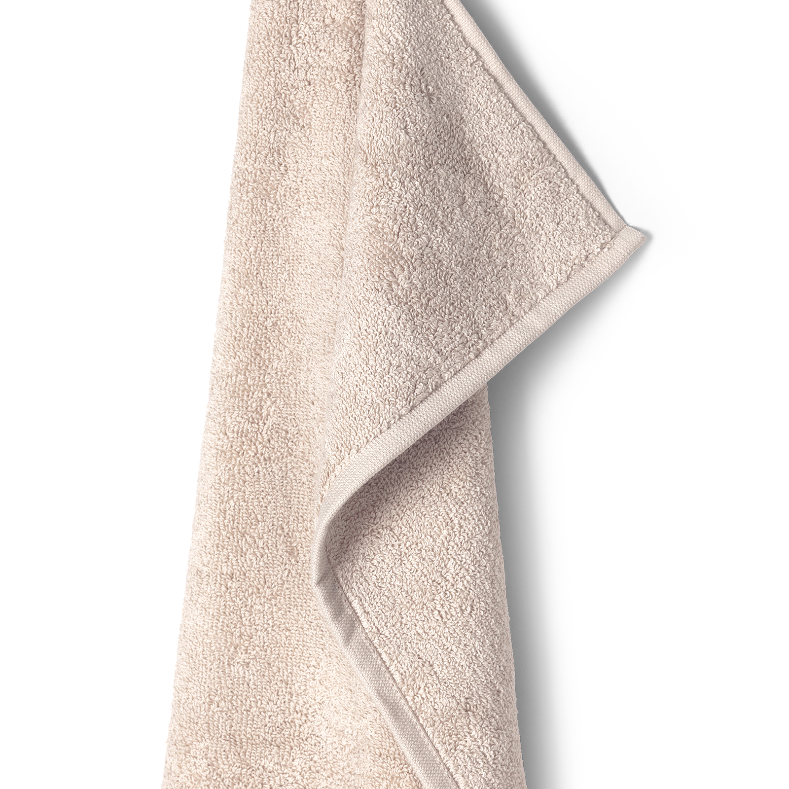 Damask Terry-gjestehåndkleet har et enkelt uttrykk med Georg Jensen Damasks ikoniske logo innvevd som en elegant detalj. Cashmere er en diskret, brunaktig gråtone med et rolig og eksklusivt uttrykk. Den er inspirert av naturfargen på kasjmirgeitens ull.