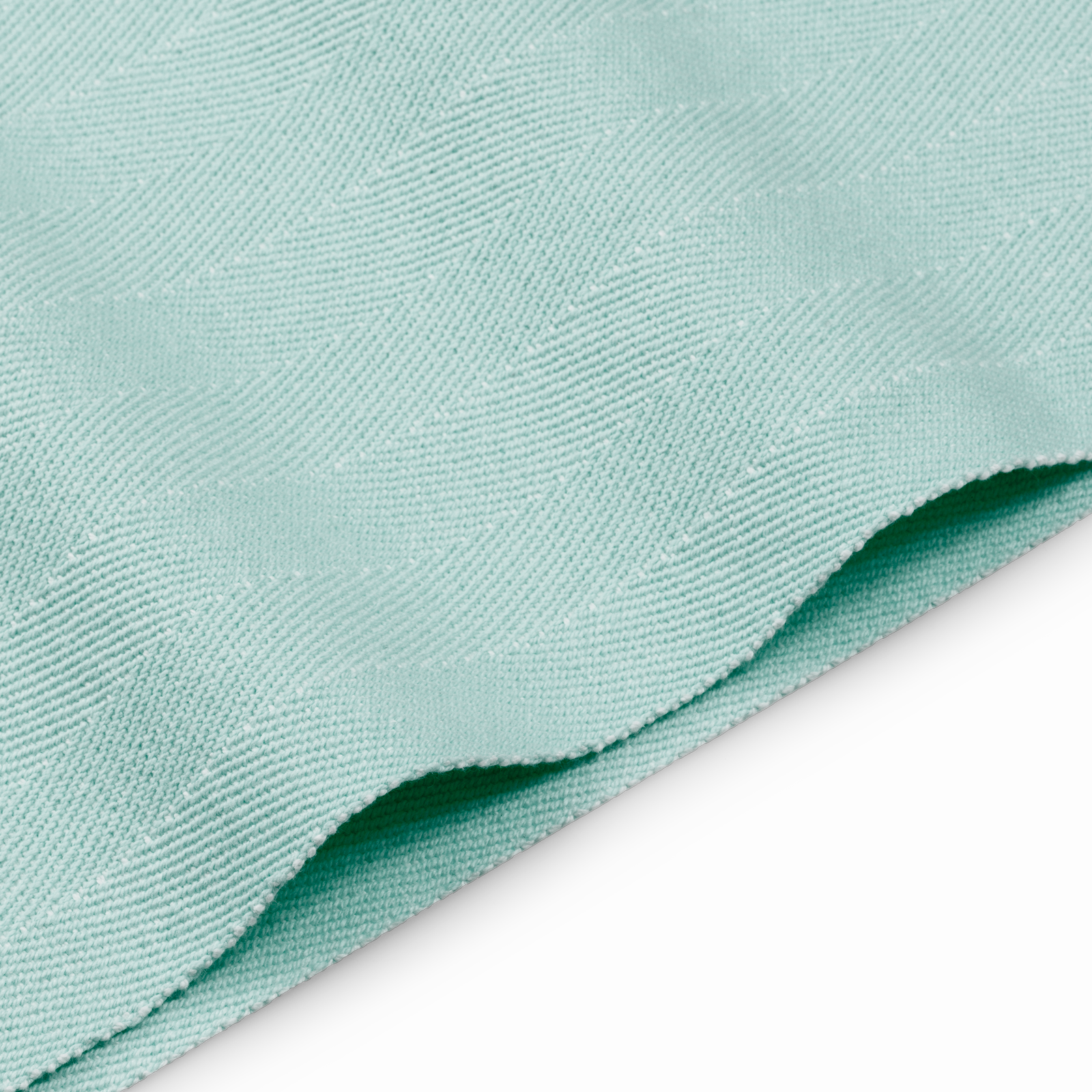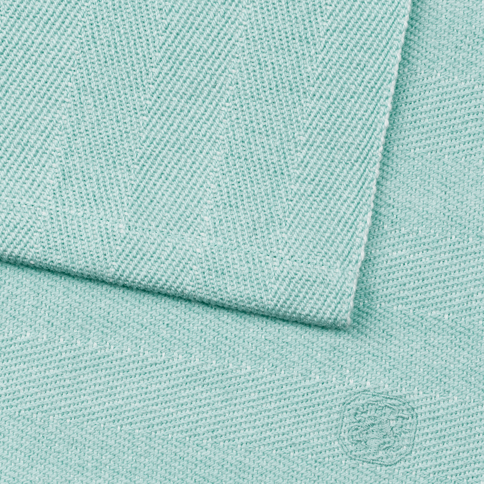 Dekk et elegant bord med Herringbone-spisebrikker i fargen Deep Glass. Spisebrikkene er vevd i 100 % kraftig bomull. Vevemetoden gir det karakteristiske fiskebeinsmønsteret, og de kraftige garnene får spisebrikkene til å ligge tungt på bordet. De har en liten brodert logo i samme nyanse som vevingen. Den klare, blågrønne nyansen Deep Glass er inspirert av fargen på råglass.