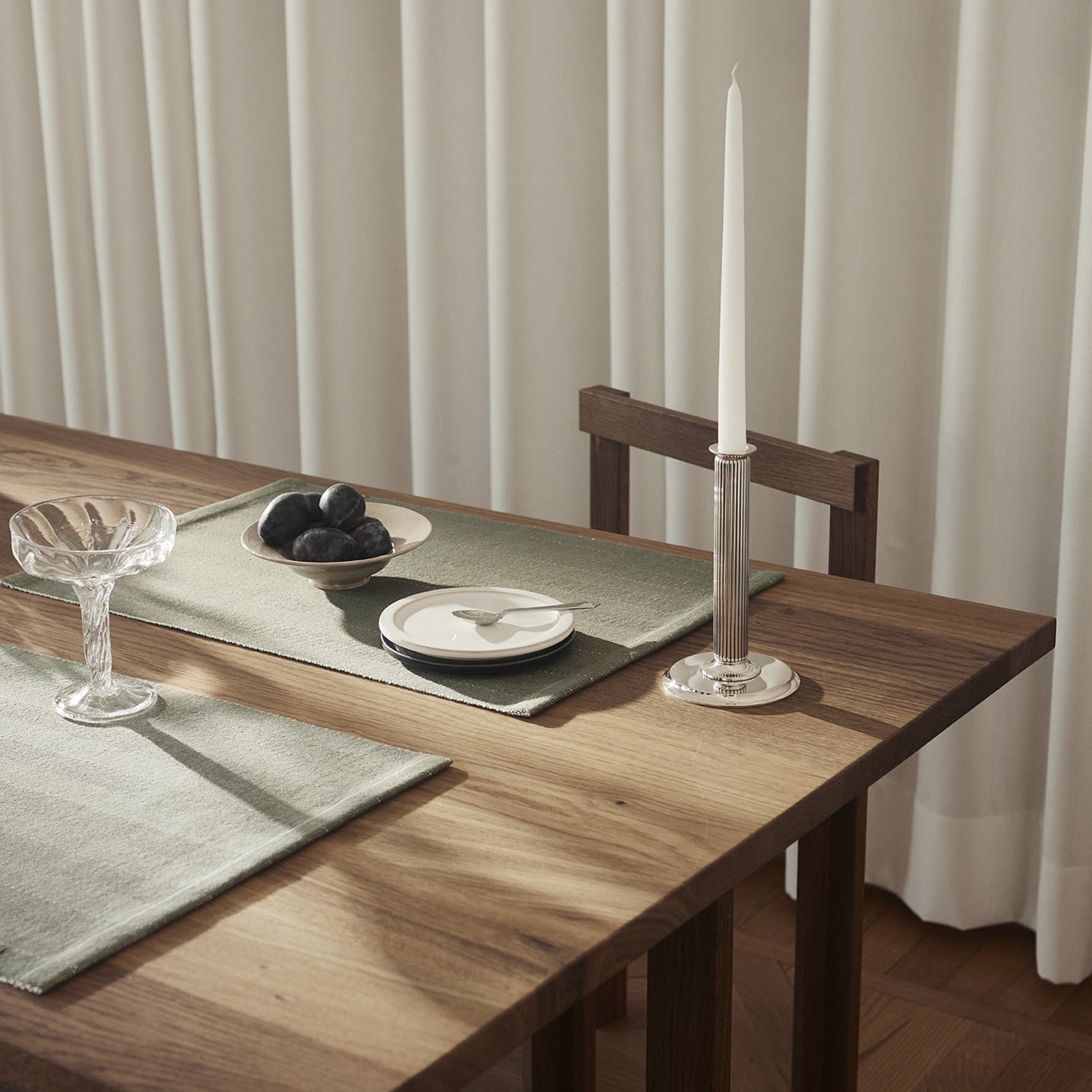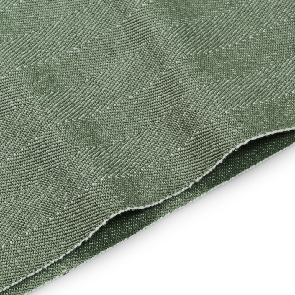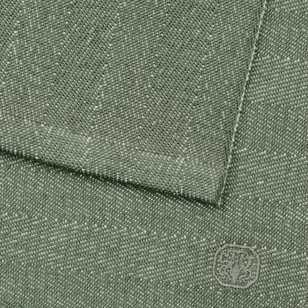 Herringbone er en kraftig fiskebensvevd spisebrikke i 100 % bomull. God til både helg og hverdag. Spisebrikken har en liten brodert Georg Jensen Damask-logo og ligger godt på bordet. Favorittfargen Mineral Green er et lysegrønt vårtegn.