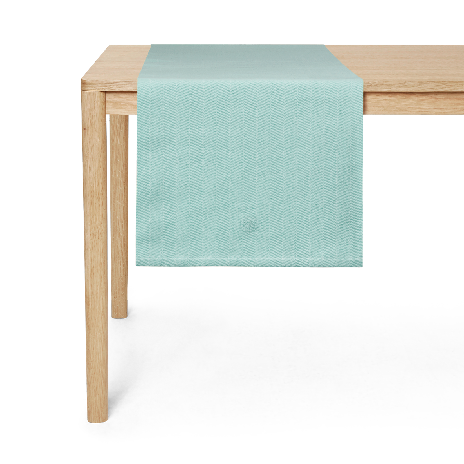 Dekk et elegant bord med Herringbone-bordløper i fargen Deep Glass. Den klassiske bordløperen er vevd i 100 % kraftig bomull. Vevemetoden gir det karakteristiske fiskebeinsmønsteret, og de kraftige garnene får bordløperen til å ligge tungt på bordet. Den har en liten brodert logo i samme nyanse som vevingen. Den klare, blågrønne nyansen Deep Glass er inspirert av fargen på råglass.