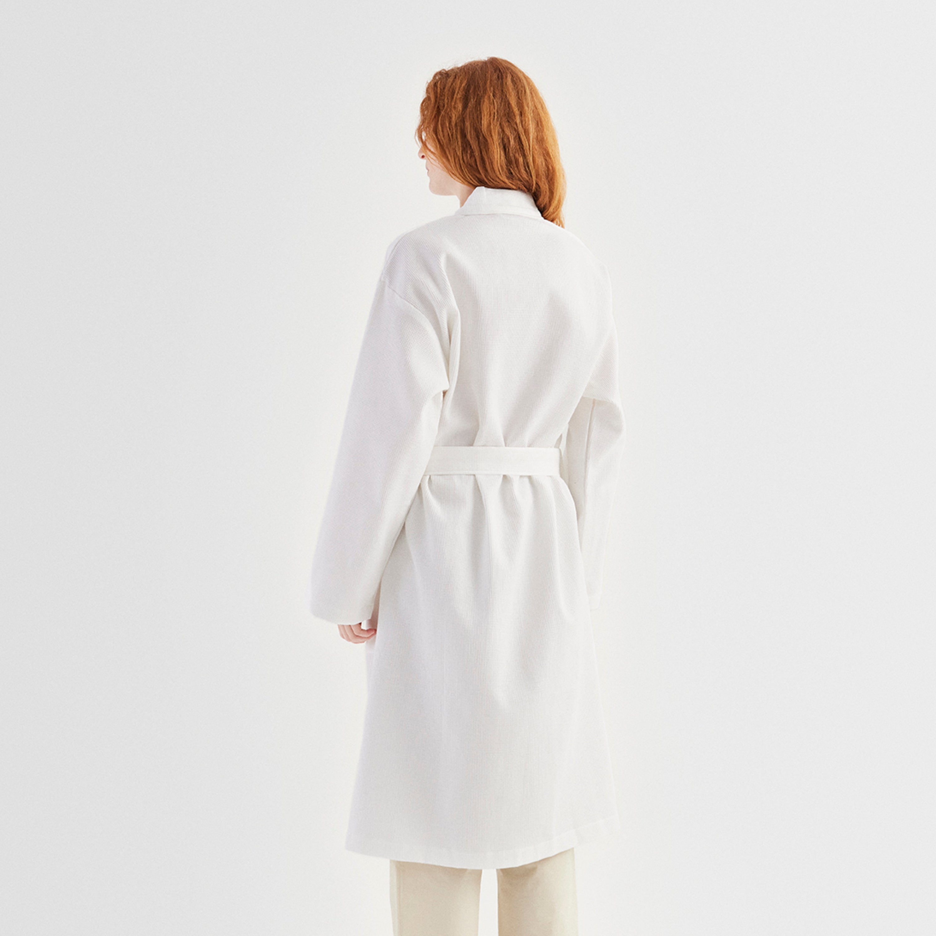 I hvitt er den vaffelvevde Kimono+ en elegant versjon av den helt klassiske morgenkåpen. Lys, varm og ganske uunnværlig på kjølige dager.