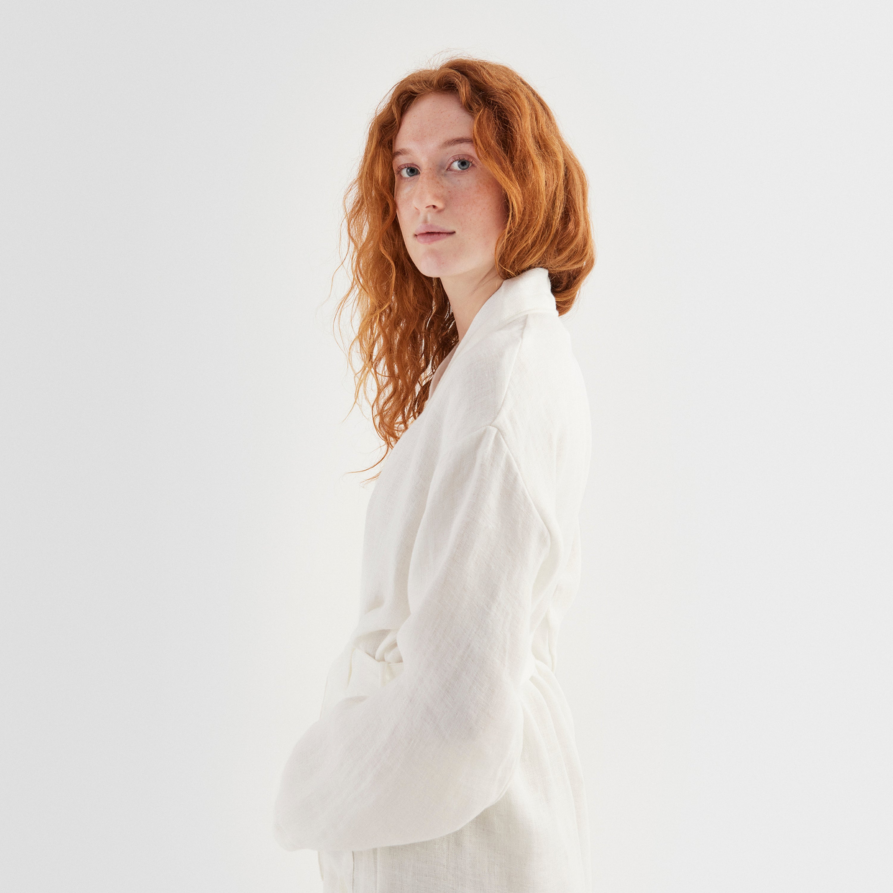 Linen kimono er vevd i 100 prosent lin, og designet setter fokus på funksjonalitet, kvalitet og skjønnhet. Det klassiske snittet og den tunge linkvaliteten gjør kimonoen til en favoritt etter badet, før sengetid eller på en tur til stranden. Den myke og behagelige kimonoen passer både menn og kvinner.
