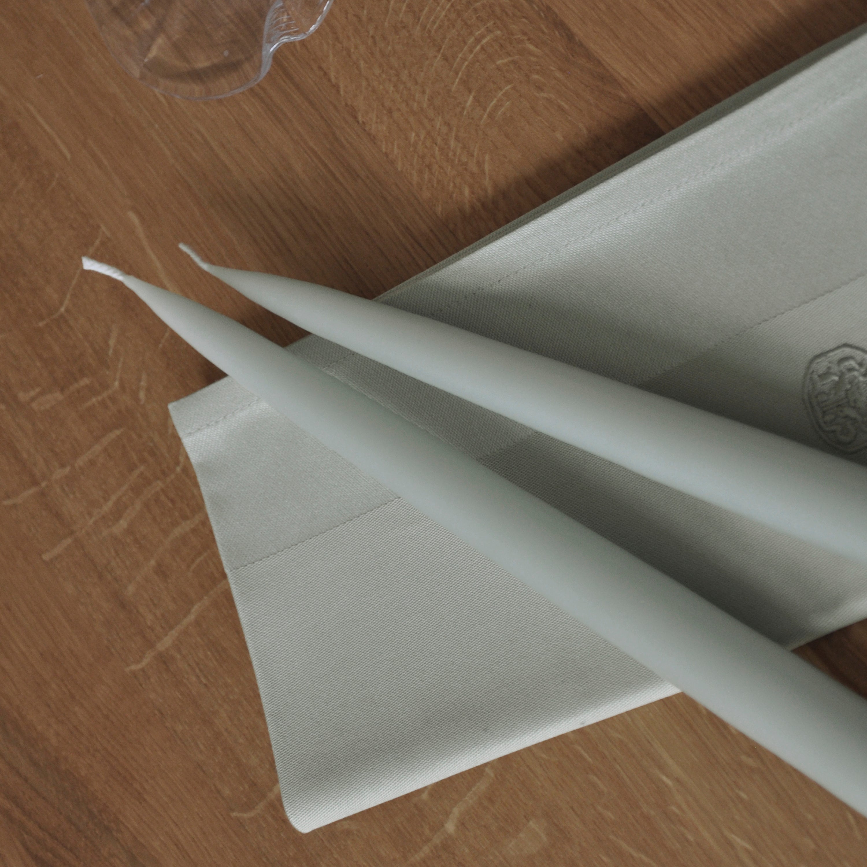 Georg Jensen Damask står bak en liten eksklusiv kolleksjon med tilbehør til boligen. Puter, pledd, sengetepper, kurver og stearinlys i samme gode kvalitet som våre andre produkter. Stearinlys fra Georg Jensen Damask kommer i en eske med fire lys. Fargen Light Green matcher servietter, spisebrikker og duker i samme nyanse.