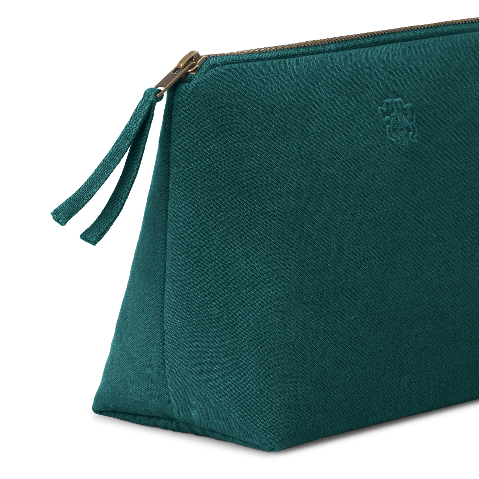Funksjonell og romslig toalettmappe i et tidløst design. All-toalettmappen er vevd i 100 % bomull med en innvendig lomme og har Georg Jensen Damasks logo brodert som en elegant detalj. Fargen Evergreen er en dyp, kjølig grønn – klassisk og sofistikert.