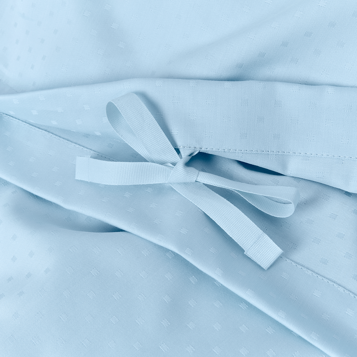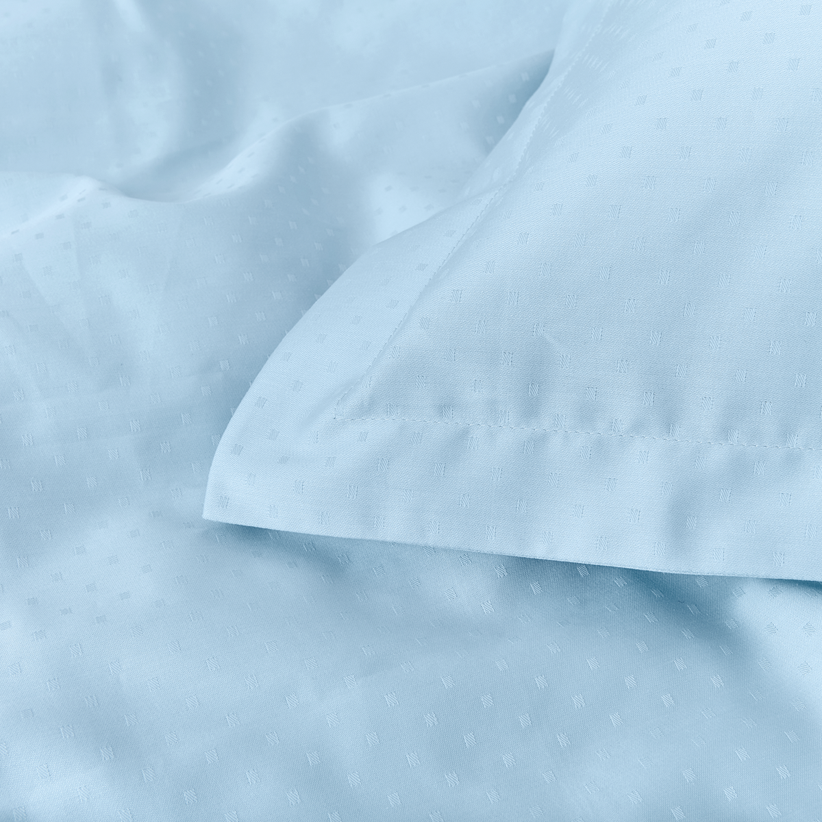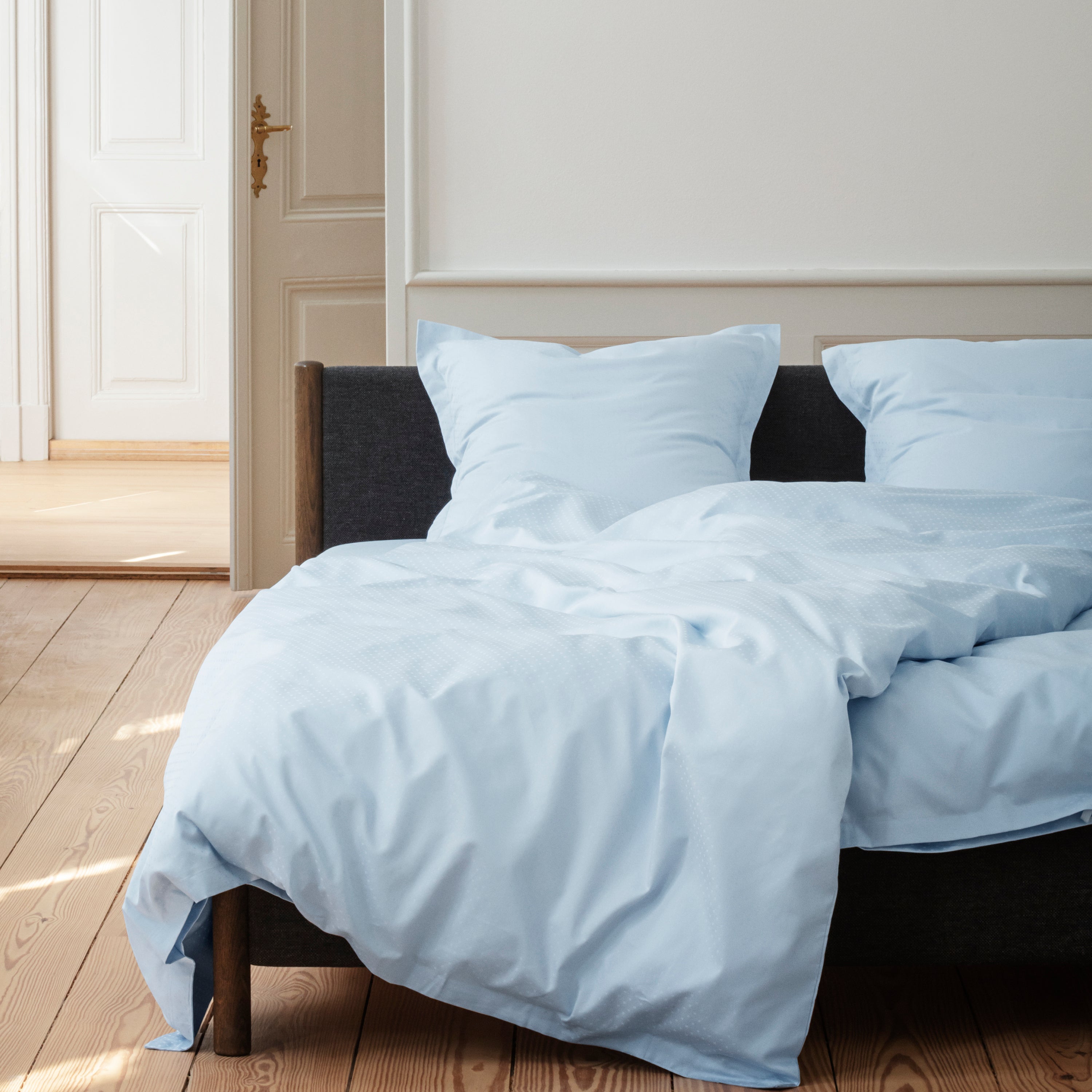 Nordlys-sengetøyet har et elegant design, der nordlysets organiske former er oversatt til et tidløst geometrisk mønster. Light Blue er en vakker, lys nyanse av blått.