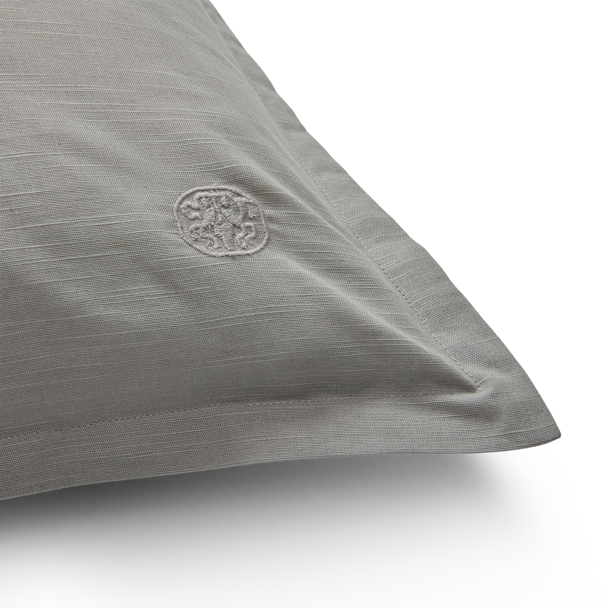 I den klassiske lysegrå fargen blir puten et rolig element i innredningen. I samme design finnes det også et sengeteppe.