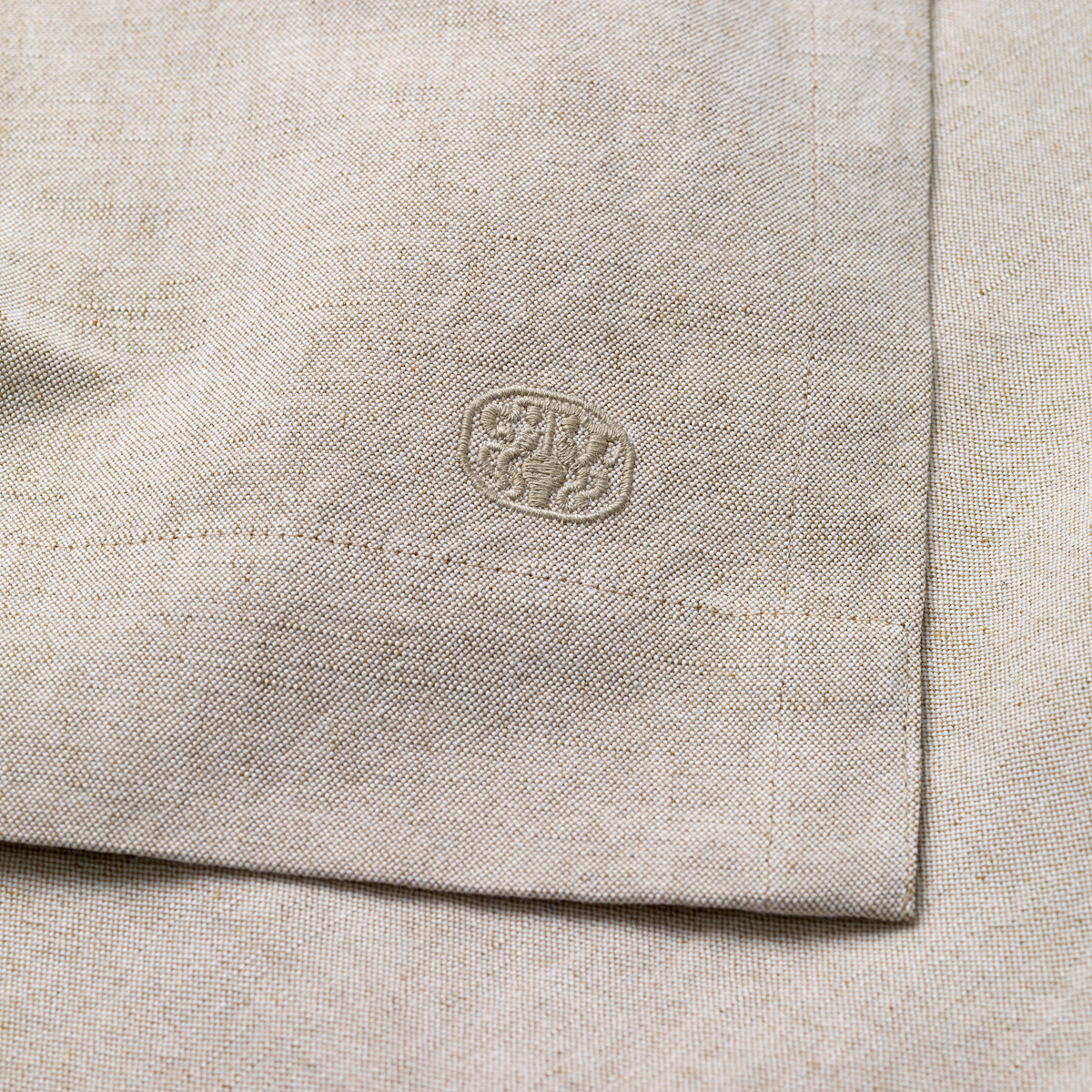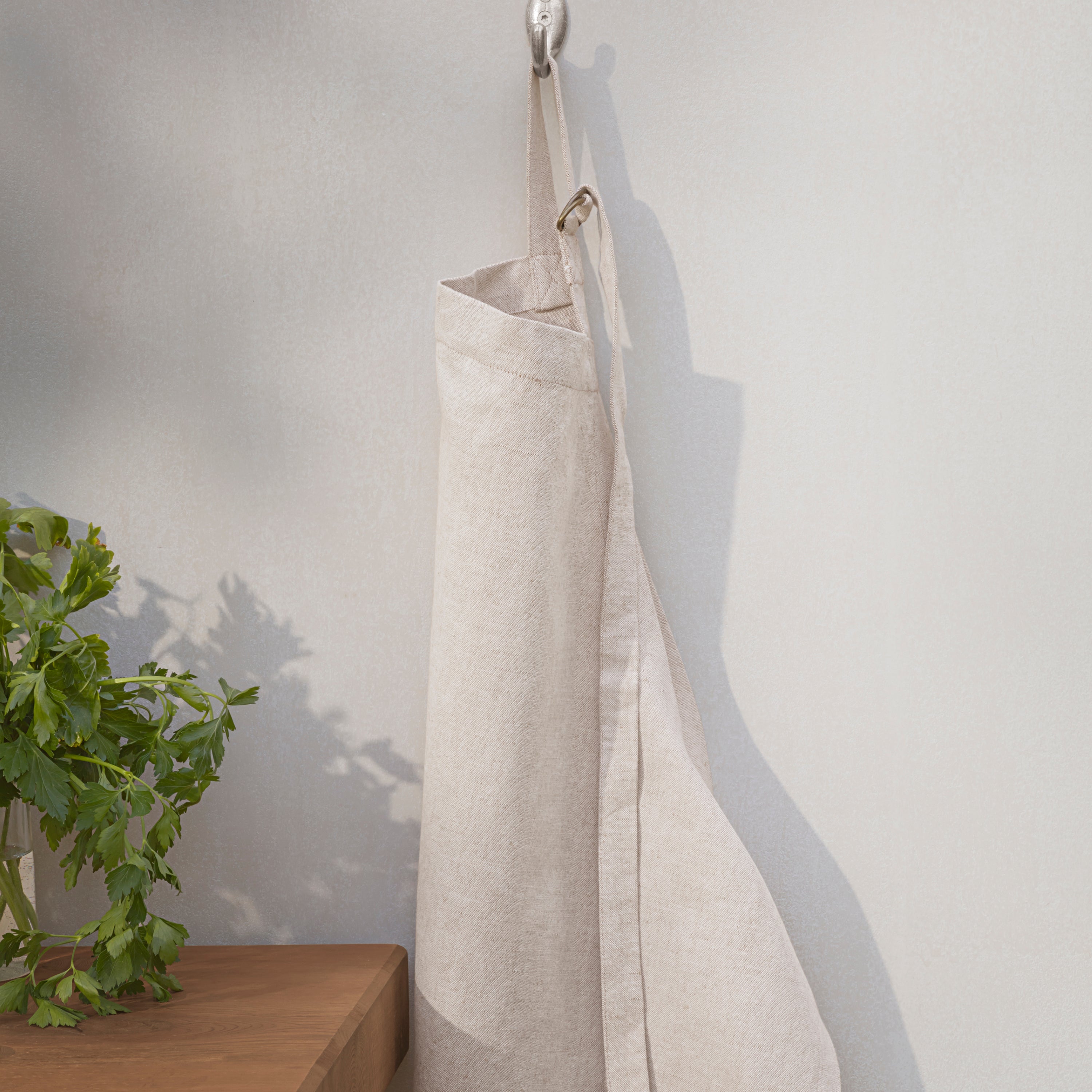 Det klassiske forkleet er vevd i en blanding av bomull og lin. Det har et enkelt og tidløst uttrykk med en liten brodert logo nederst som en fin detalj.