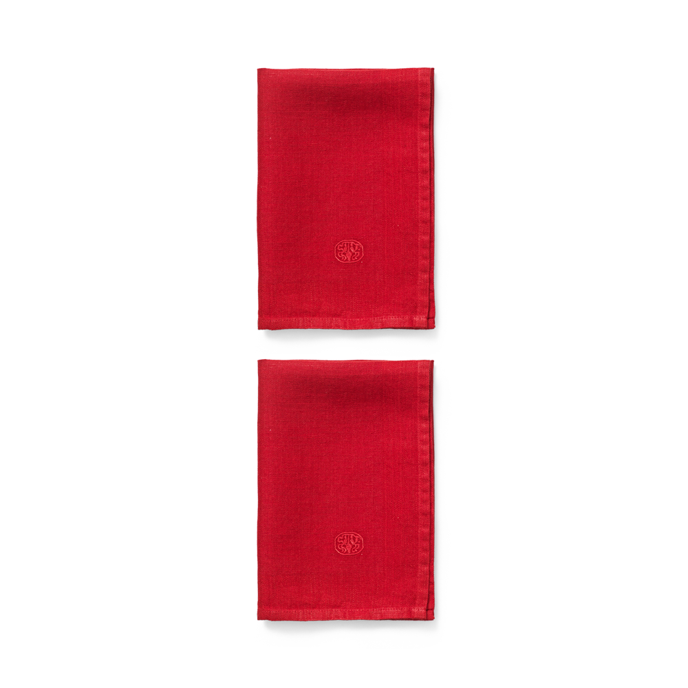 Med sitt enkle design og broderte logo er den røde linservietten en vakker og fargemettet tilføyelse til borddekkingen. Den passer svært godt til en klassisk oppdekking, men kan også være en estetisk opplevelse i en mer uformell sammenheng der man dekker opp uten duk. Like fin til store middager som til en enkel frokost i julen, til fødselsdagsbordet og til andre glade stunder.