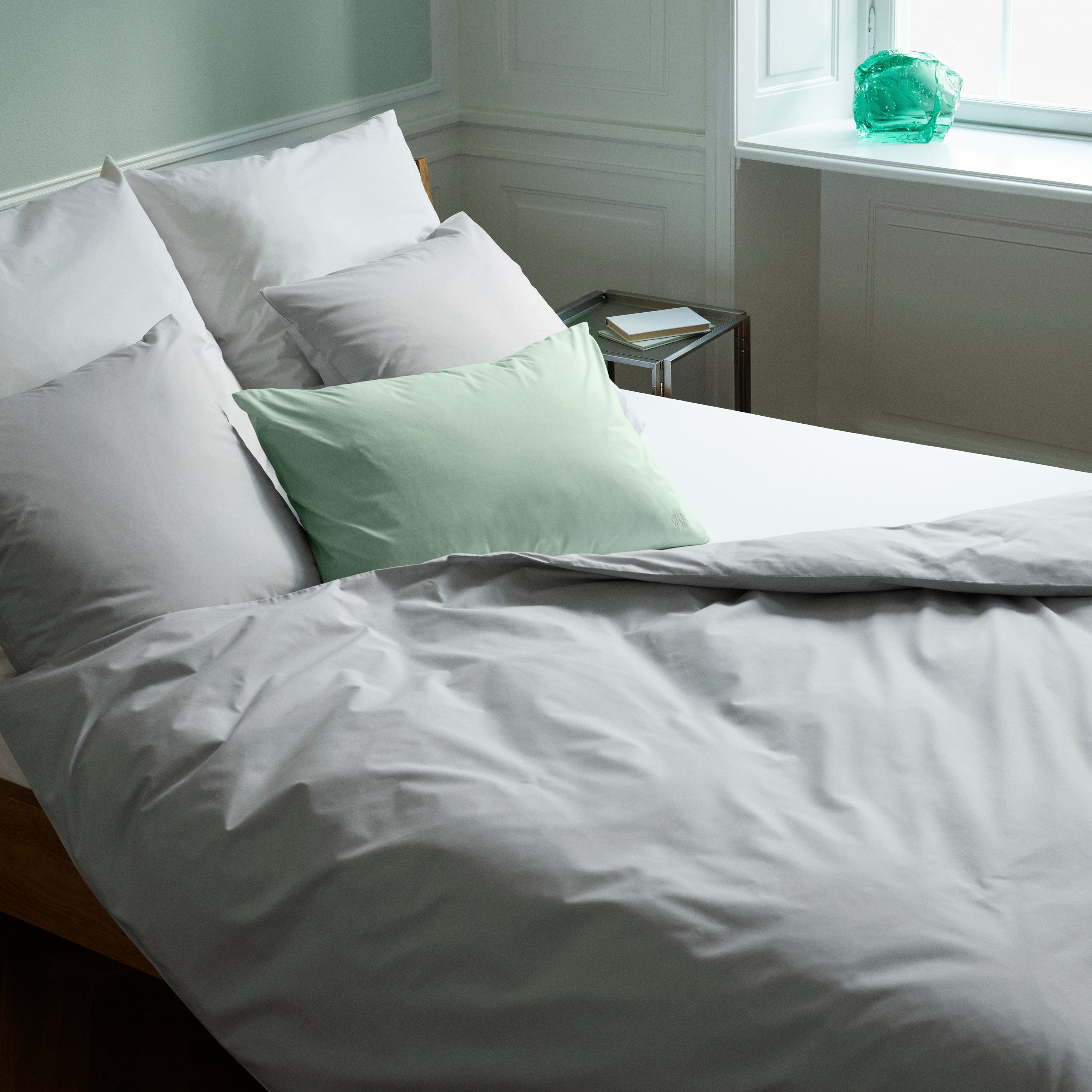 Supima Percale-serien omfatter alt fra sengegavler og puter til Dynetrekk og laken i farger som lysegrått, lysegrønt, kjølig blått og varme jordfarger. De lange bomullsfibrene gir sengetøyet en spesielt vakker og svært jevn fargetone.
