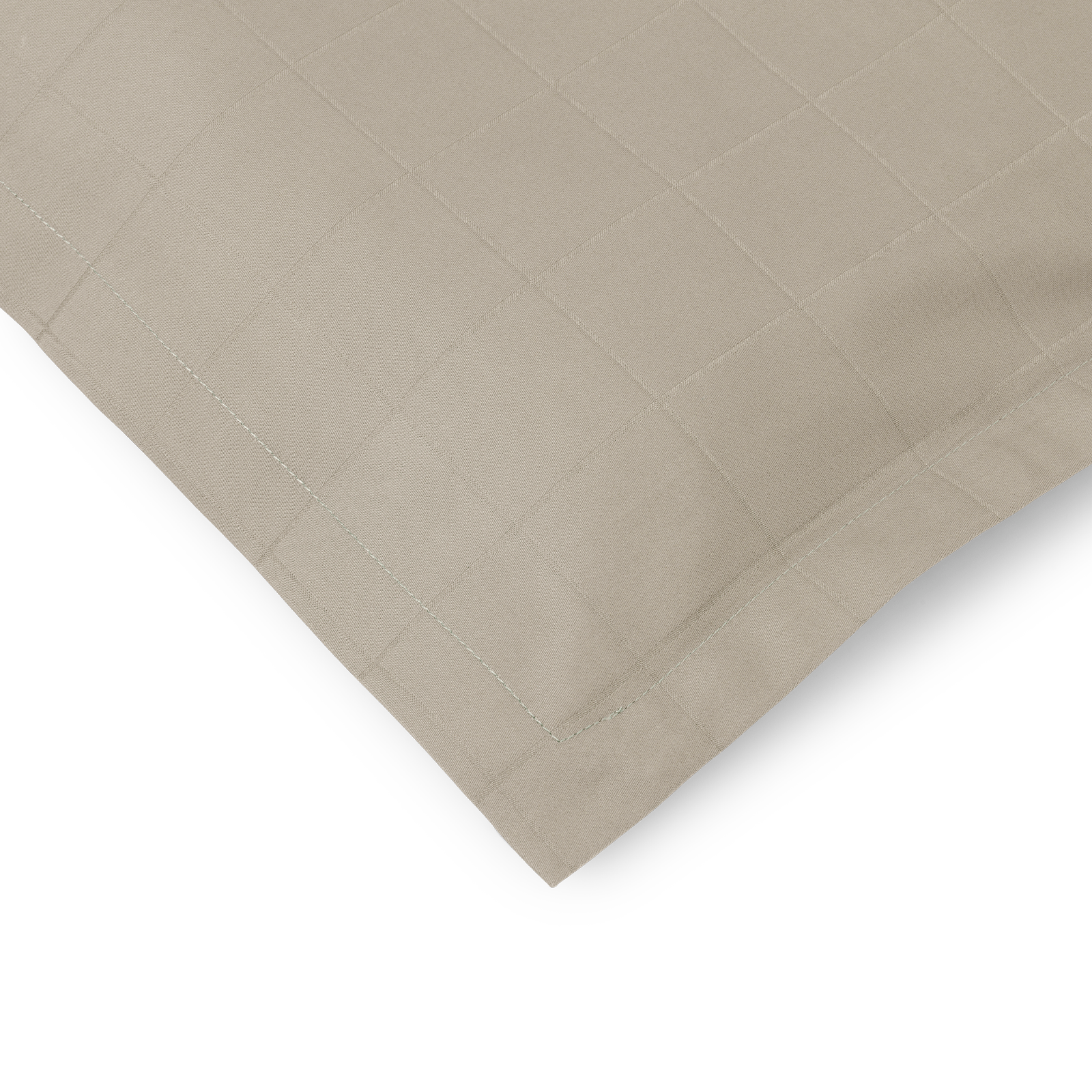 Light Squares putetrekk i fargen Grey Sand. Light Squares har et lett grafisk mønster som fremheves i den fine satengvevingen. Det er vevd i 100 % kjemmet bomull, som gir en sterk og myk overflate. Grey Sand er en varm nyanse av grå.