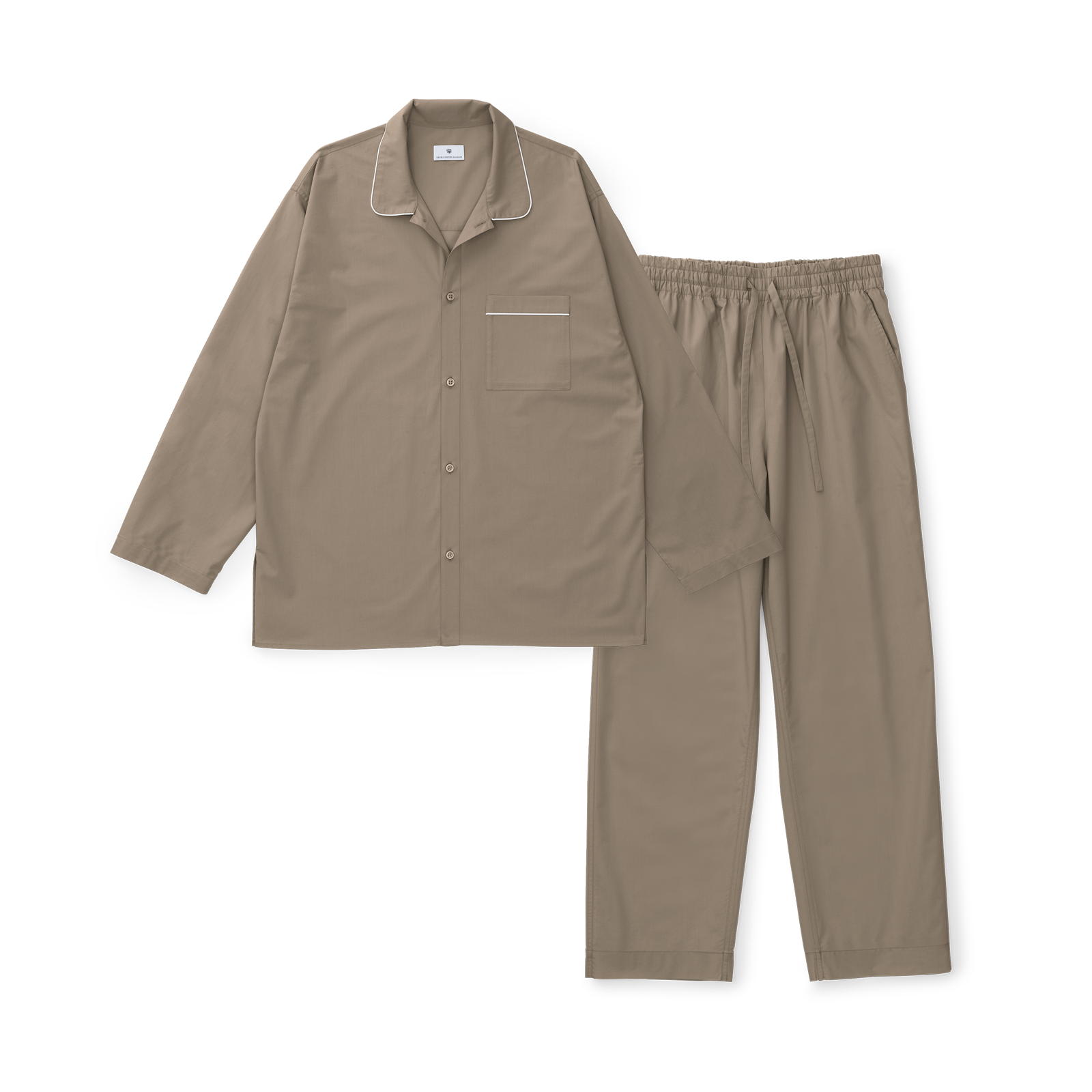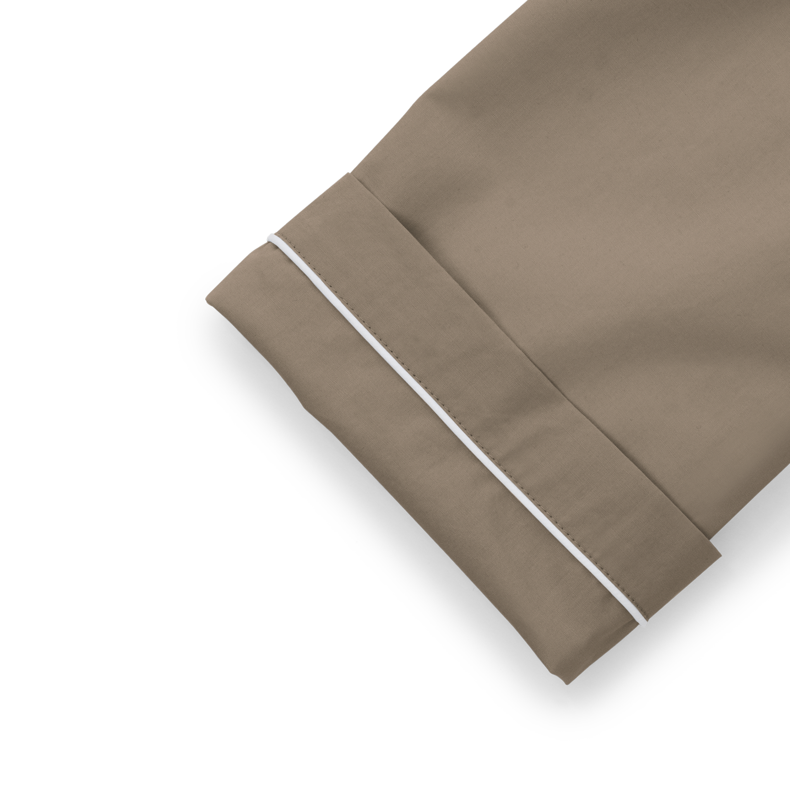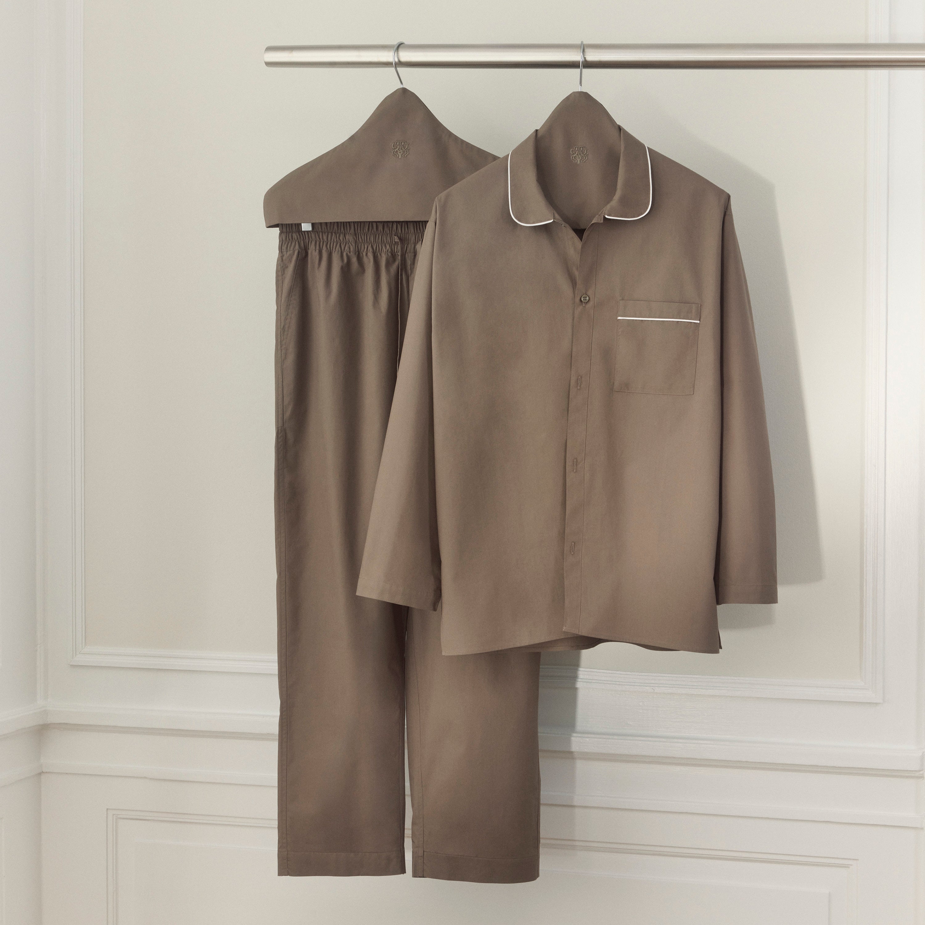 Unisex pysjamas i percalevevd Supima bomull. Pysjamasen har et klassisk snitt og elegante, hvite pipings. Walnut er en dyp, nøttebrun farge.