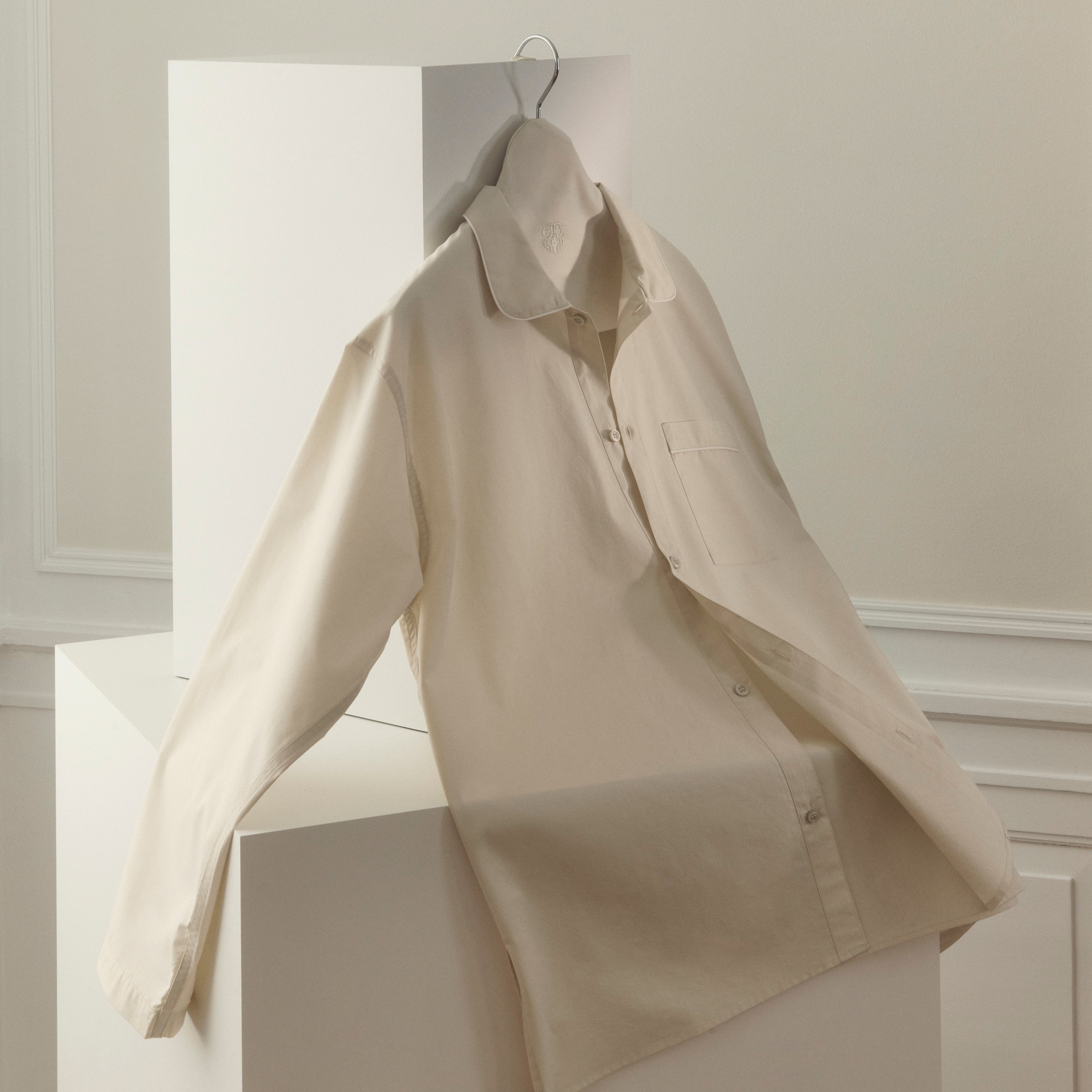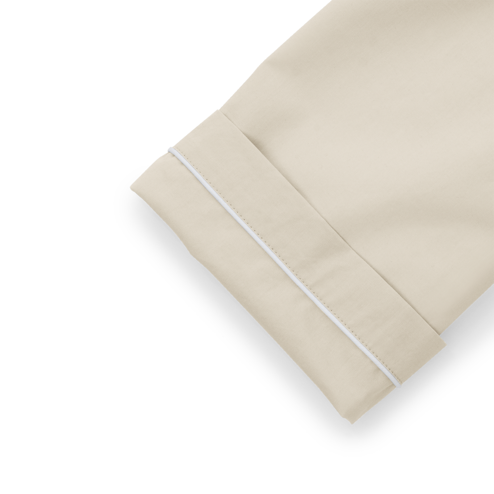 Unisex pysjamas percalevevd i Supima-bomull. Pysjamasen har en klassisk passform og elegante, hvite pipings. Archive Linen er en lys beige farge inspirert av lin fra vårt århundregamle arkiv.