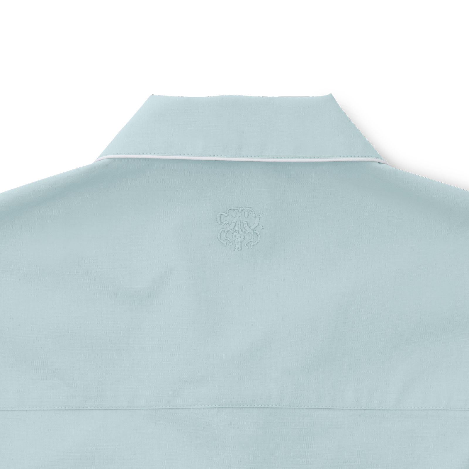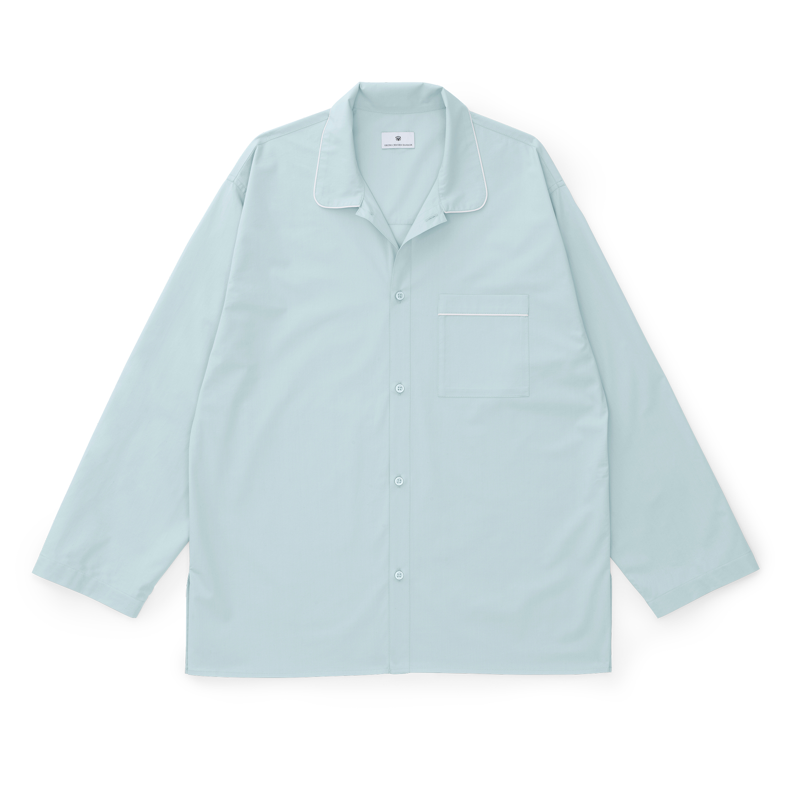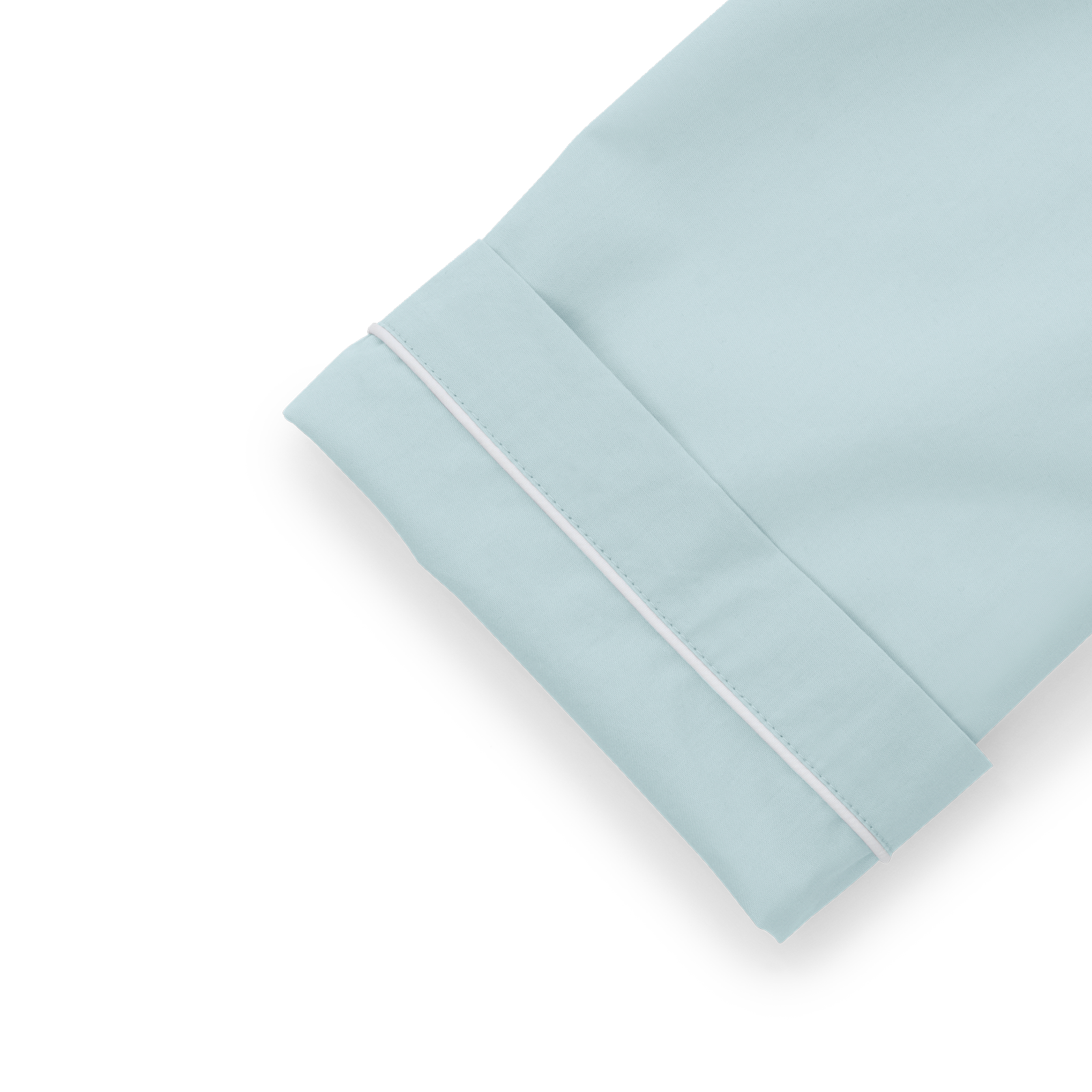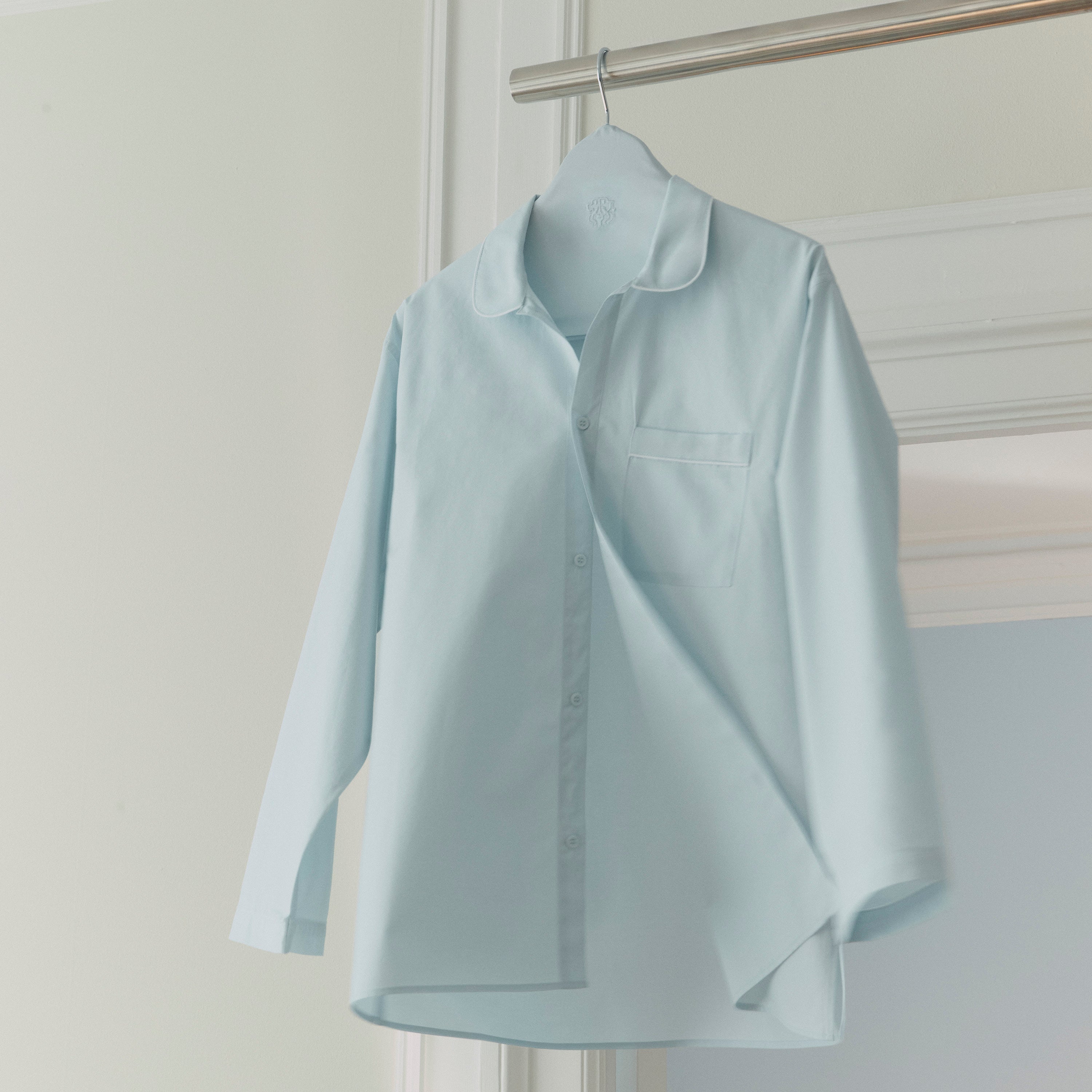 Unisex pysjamas i percalevevd Supima-bomull. Pysjamasen har en klassisk passform og elegante, hvite pyntesømmer. Minimal Blue er en svært lys nyanse av lyseblå med et hint av aqua.
