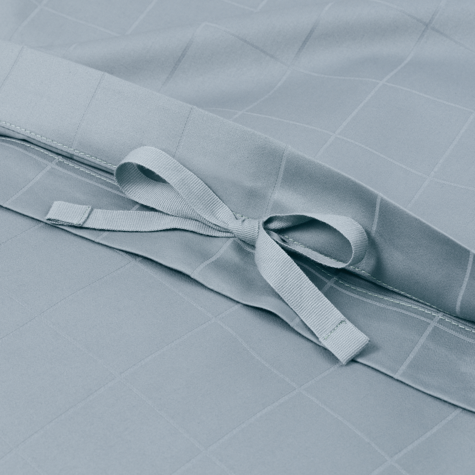 Light Squares sengetøy med et lett grafisk mønster som fremheves i den fine satengvevingen. Light Squares er vevd i 100 % kjemmet bomull, som gir en sterk og myk overflate. Fargen Blue Haze er en lys og dempet blånyanse.