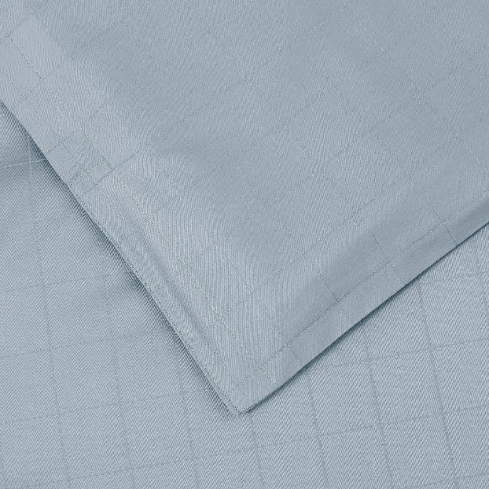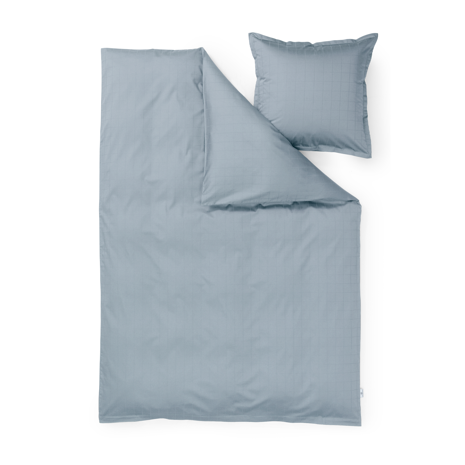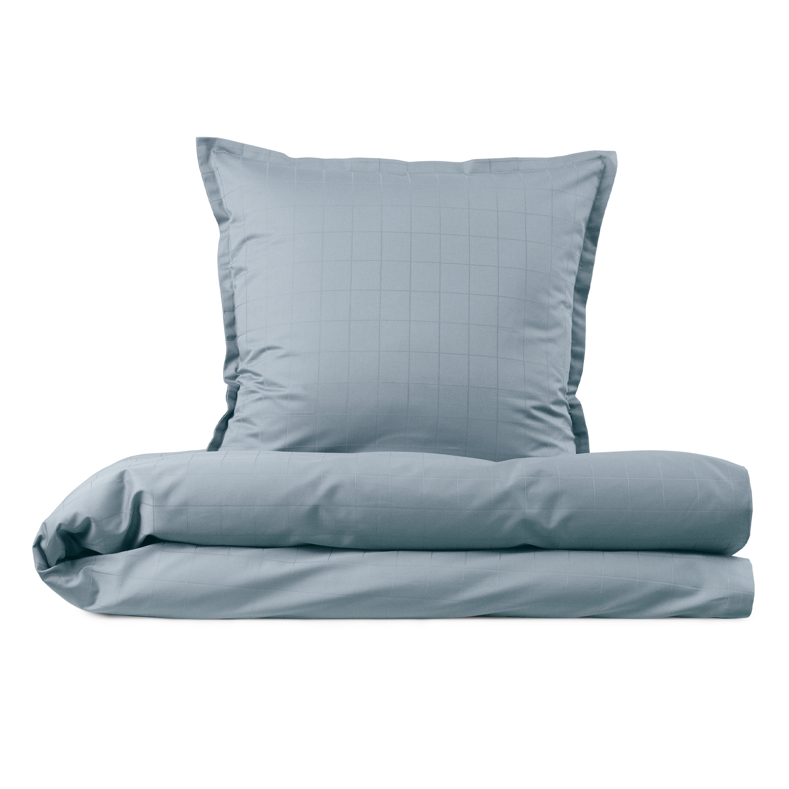 Light Squares sengetøy med et lett grafisk mønster som fremheves i den fine satengvevingen. Light Squares er vevd i 100 % kjemmet bomull, som gir en sterk og myk overflate. Fargen Blue Haze er en lys og dempet blånyanse.