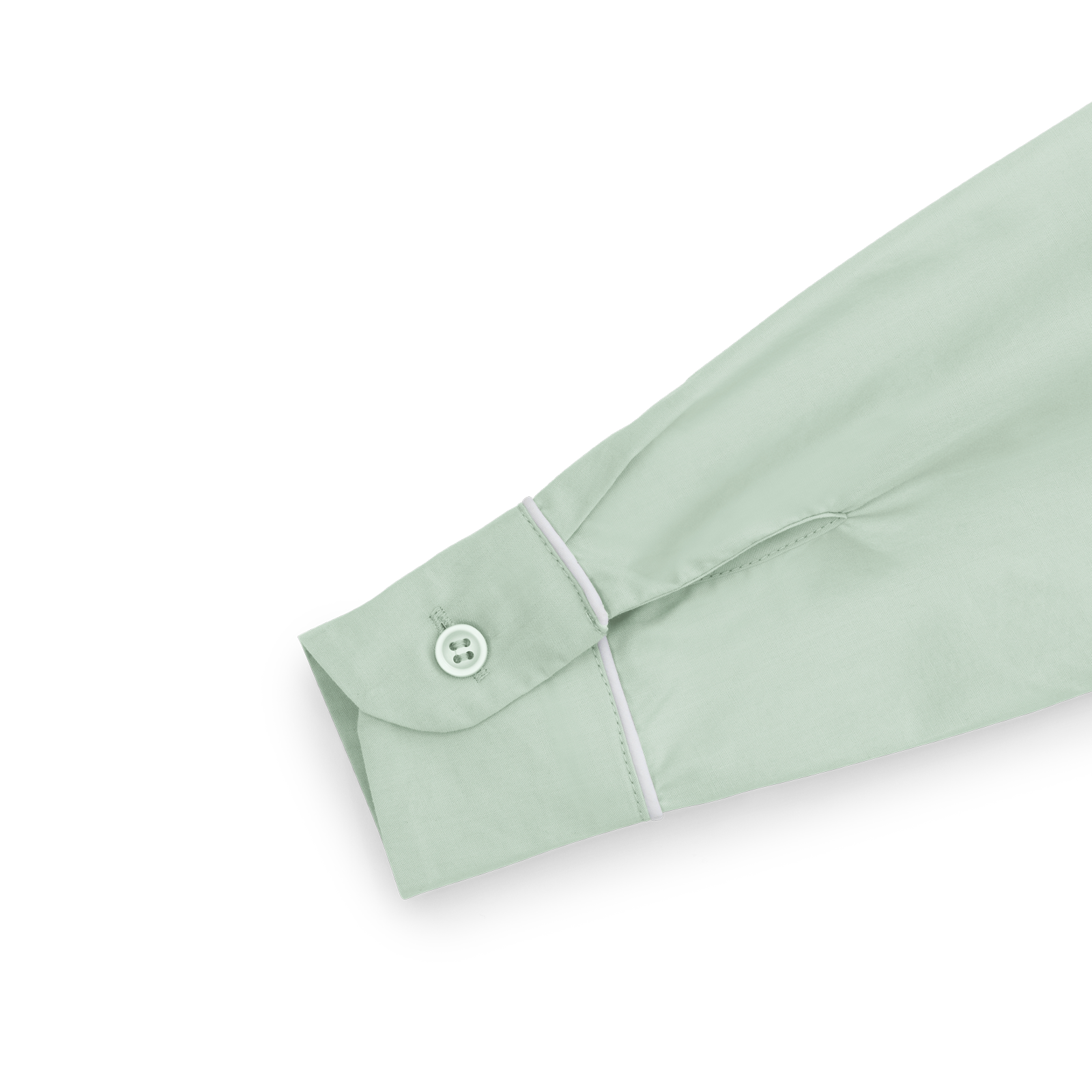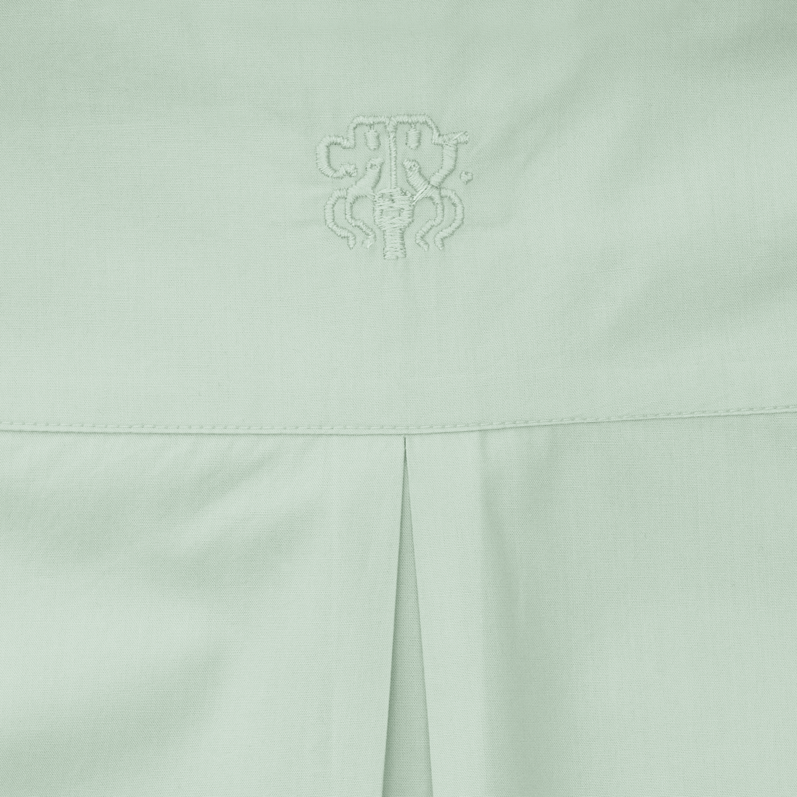 Skjortekjole til barn, vevd i Supima bomull percale. Den klare grønnblå fargen, Glass Green, er inspirert av fargen på råglass.
