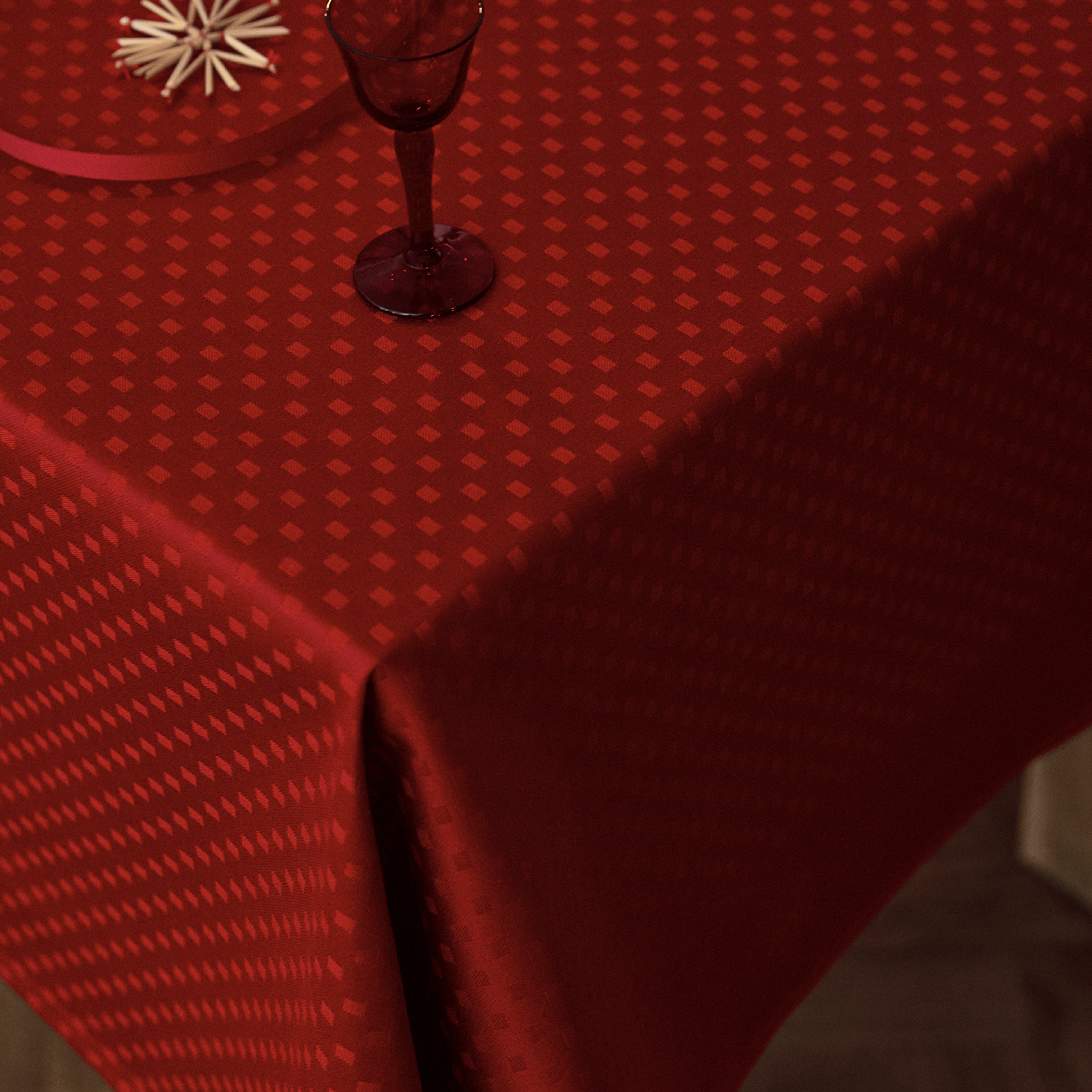 Snefnugs enkle design gjør det mulig å bruke duken både til jul og ved andre festlige anledninger året rundt. Damaskduken er vevd i 100 % dobbelttvunnet, kjemmet bomull
