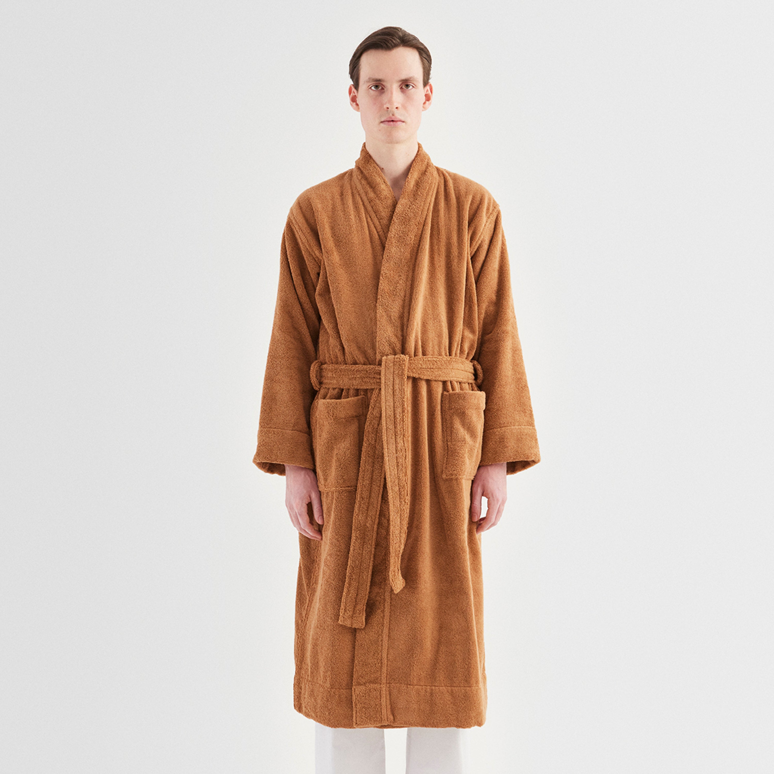 Skap en følelse av hverdagsluksus med den varme og deilige badekåpen i økologisk bomullsfrotté. Den er perfekt på kjølige morgener etter dusjen eller som uniform på langsomme helgedager.