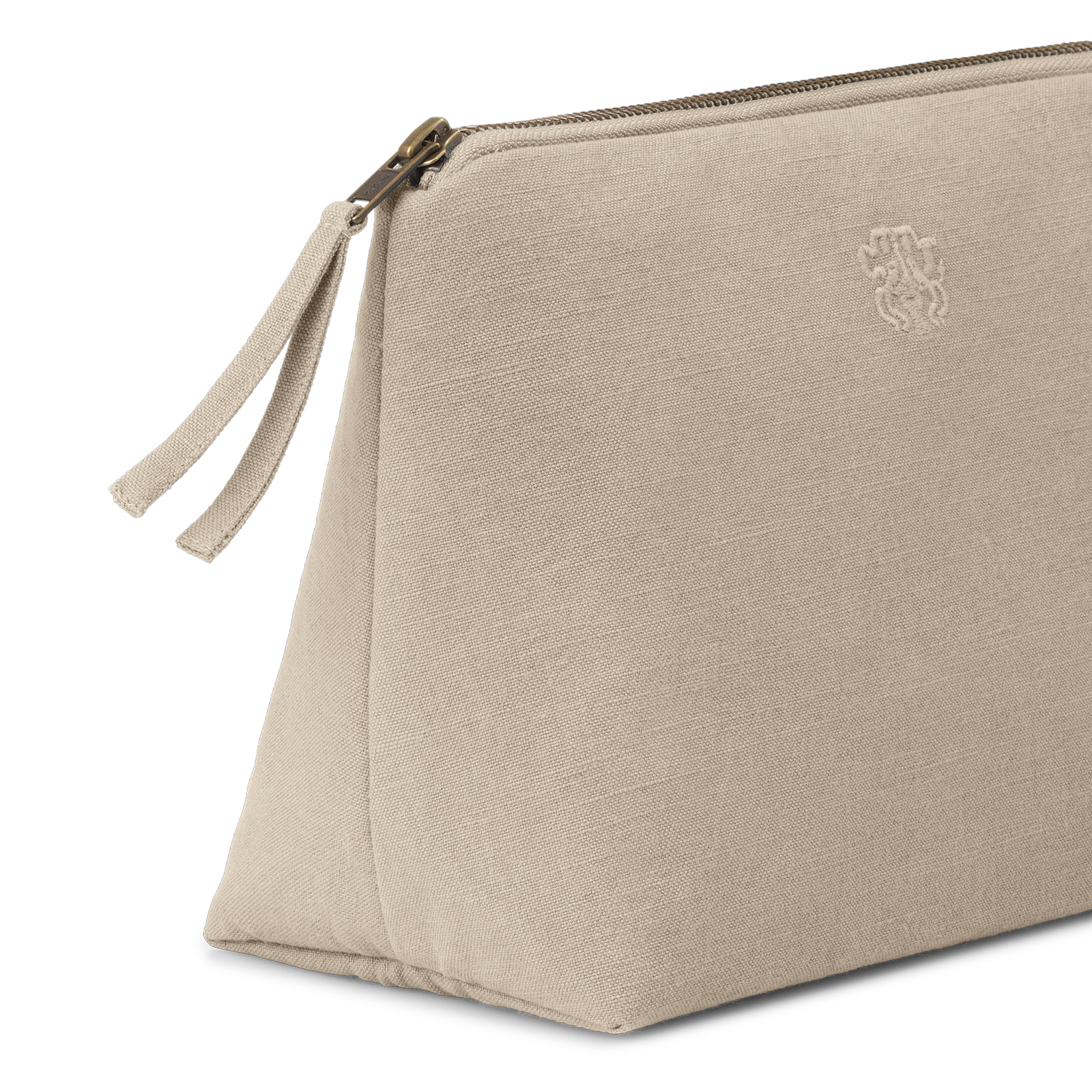 Funksjonell og romslig toalettmappe i et tidløst design. All-toalettmappen er vevd i 100 % bomull med en innvendig lomme og har Georg Jensen Damasks logo brodert som en elegant detalj. Fargen Cashmere er en diskret, brungrå nyanse med et rolig og eksklusivt uttrykk – inspirert av den naturlige fargen på kashmirull.