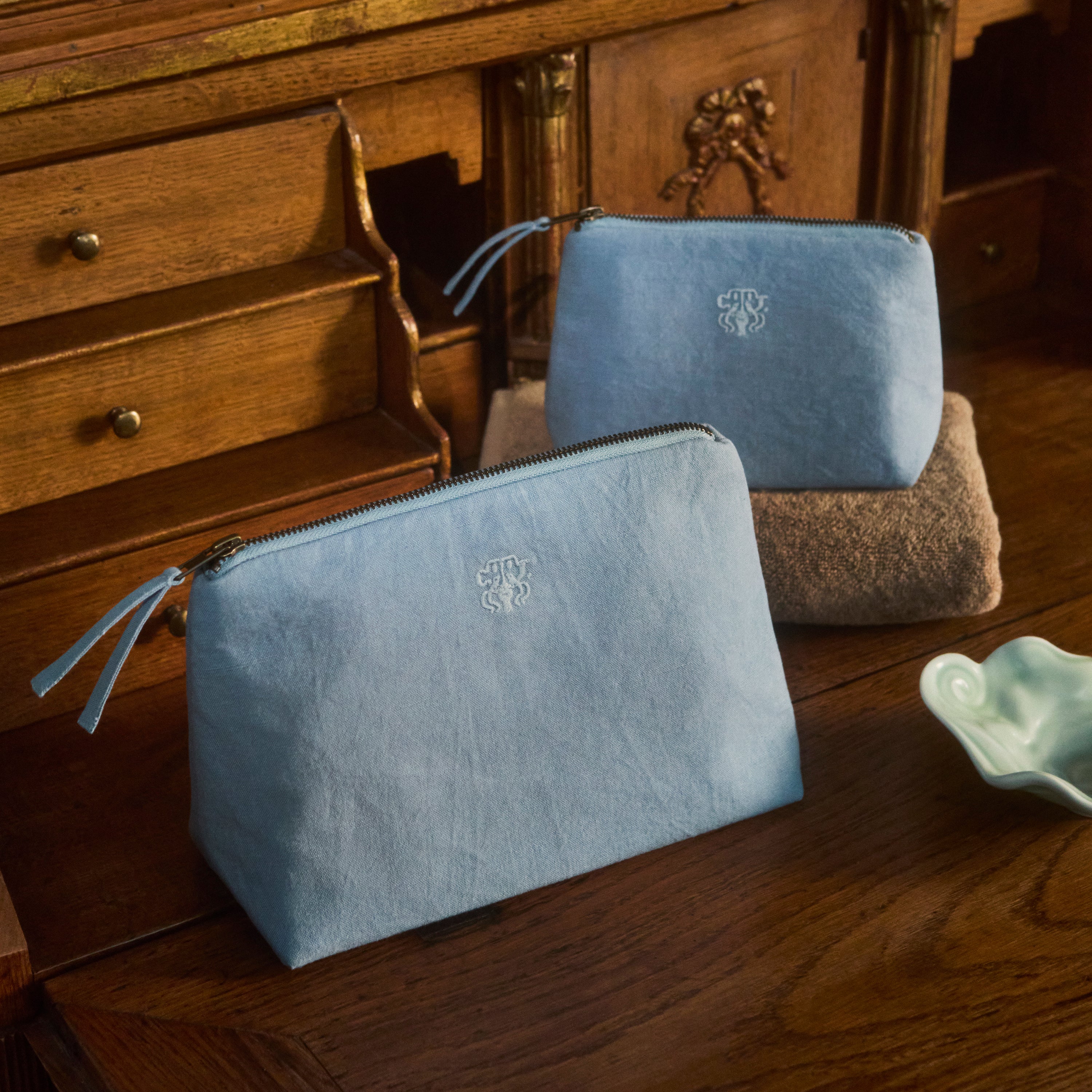 Funksjonell og romslig toalettmappe i et tidløst design. All-toalettmappen er vevd i 100 % bomull med en innvendig lomme og har Georg Jensen Damasks logo brodert som en elegant detalj. Fargen Blue Hour er en vakker og tidløs mellomblå nyanse.