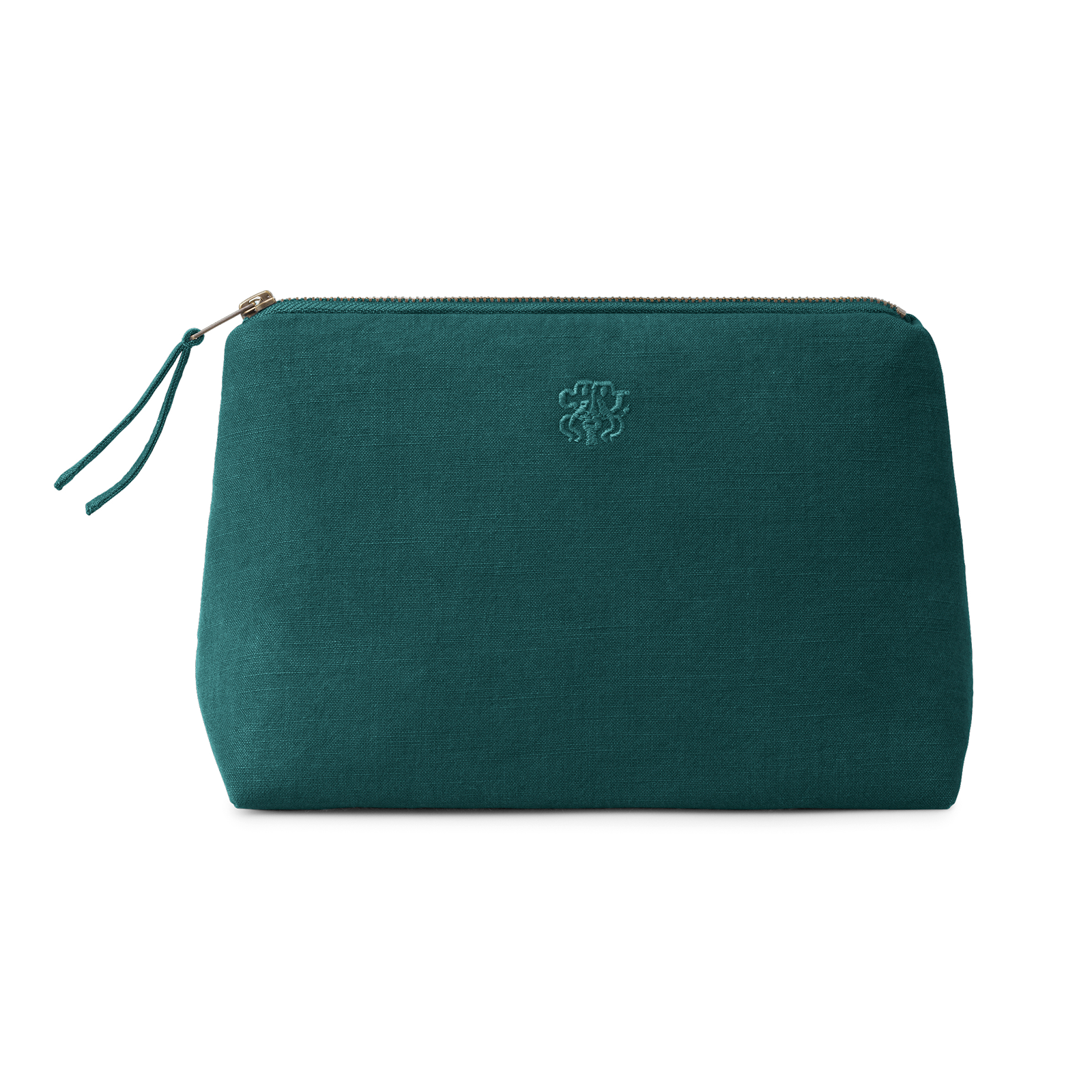 Funksjonell og romslig toalettmappe i et tidløst design. All-toalettmappen er vevd i 100 % bomull med en innvendig lomme og har Georg Jensen Damasks logo brodert som en elegant detalj. Fargen Evergreen er en dyp, kjølig grønn – klassisk og sofistikert.